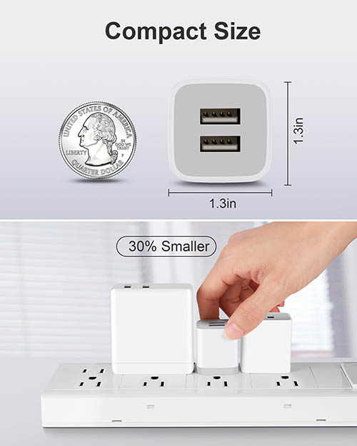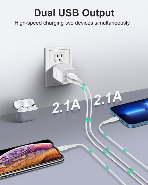 Model Number: UC1902A Manufacturer: Guangdong Mingxin Power Technologies Co., Ltd. [Powerful Charging]: USB Charger Block with dual USB Output: 5V/2.1A and Input:100-240V, which enables you to charge two smart phone or tablet devices simultaneously at full speed [Safety & Reliable] : The wall charger has multiple safety protection system to prevent over charging, over current, over heat and short circuit. When the battery is fully charged, USB charger box will automatically stop charging to protect your connected device. [Compact & Lightweight]: Charging block with compact design, lightweight, easy to carry, does not occupy socket space, ideal for travel, home and office [Widely Compatibility]: USB Wall Charger compatible with iPhone 17 16 15 14 13 12 11 Pro Max Mini XS Max XR X 8 7 6 6S Plus SE 5S 5C, Pad Pro Air Mini, Samsung, LG, Moto, Google Pixel, Android Phones, Tablets, GPS Devices, E-book Readers, Bluetooth Speaker, MP4 Players and more [What Your Get]: 3-Pack Dual Port USB Charger Power Adapter, 24h/7d Friendly customer service