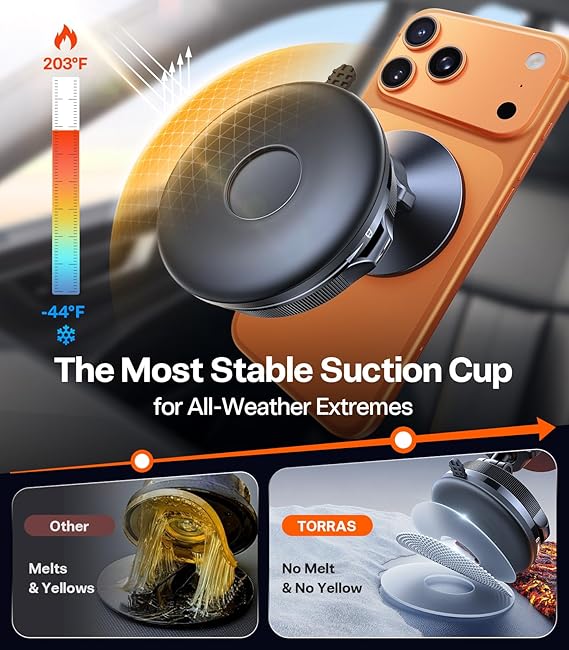 【Ultra-Stable Suction Cup - Vacuum Lock Tech & 4-Layer Nano Gel】Engineered for a rock-solid, worry-free hold. Our exclusive Vacuum Lock Technology creates a powerful seal that triples the suction force, while the all-weather nano gel delivers a massive 98 lb grip—staying reliable from freezing -44°F to scorching 203°F. It installs securely and removes without a trace. (Proven through 9,999+ adhesion tests for durable, stable performance) 【Unrivaled Magnetic Hold, Zero Loss of Force】Featuring a powerful array of 24 N55 neodymium magnets in a dual-ring matrix, this MagSafe car mount delivers a magnetic hold 300% stronger than ordinary ones. It maintains a powerful 3600gf hold—proven by 8,000 off-road vibration tests—to keep your largest phones secure through bumps, potholes, and sudden turns. The enclosed magnetic field ensures zero signal interference, guaranteeing uninterrupted navigation and crystal-clear calls 【Universal Compatibility】Stop worrying about compatibility. This car phone holder mount is your one-stop solution. It attaches directly to iPhone 17/16/15/14/13/12 series and all MagSafe cases. For all other phones and cases—We also include 2 metal rings (which don’t interfere with wireless charging). Simply attach the ring to your phone or case if it’s not already magnetic 【Ultra-Flexible Angle Adjustment】This magnetic phone holder for car is engineered with a 360° rotating base and 210° adjustable zinc alloy arms, allowing secure installation on your dashboard, windshield, or screen. Its versatility extends beyond the car—it's equally suited for your office, kitchen, gym, travel or even shower. When not in use, the unique foldable design reduces its size by 50% for tidy and organized storage 【Lifetime Support & an Ironclad 365-Day Warranty】Backed by 17 years of expertise in phone accessories, USINFLY stands behind every product with an unwavering commitment. We offer a comprehensive 365-day warranty and dedicated, round-the-clock customer support. If anything happens, we're here to make it right—guaranteed